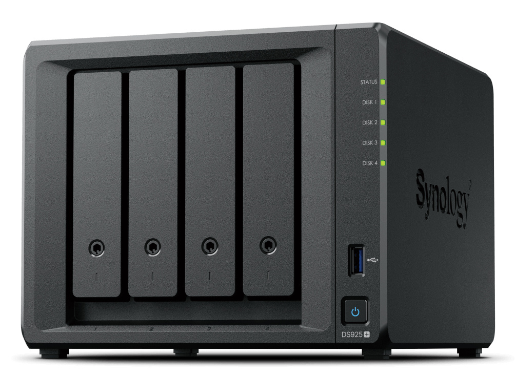 Synology DiskStation DS925+. Soort: NAS, Apparaatklasse: Home & Home Office. Processorfamilie: Ryzen Embedded, Processormodel: V1500B, Frequentie van processor: 2,2 GHz. Intern geheugen: 4 GB, Intern geheugentype: DDR4. Totale geïnstalleerde opslagcapaciteit: 0 TB
