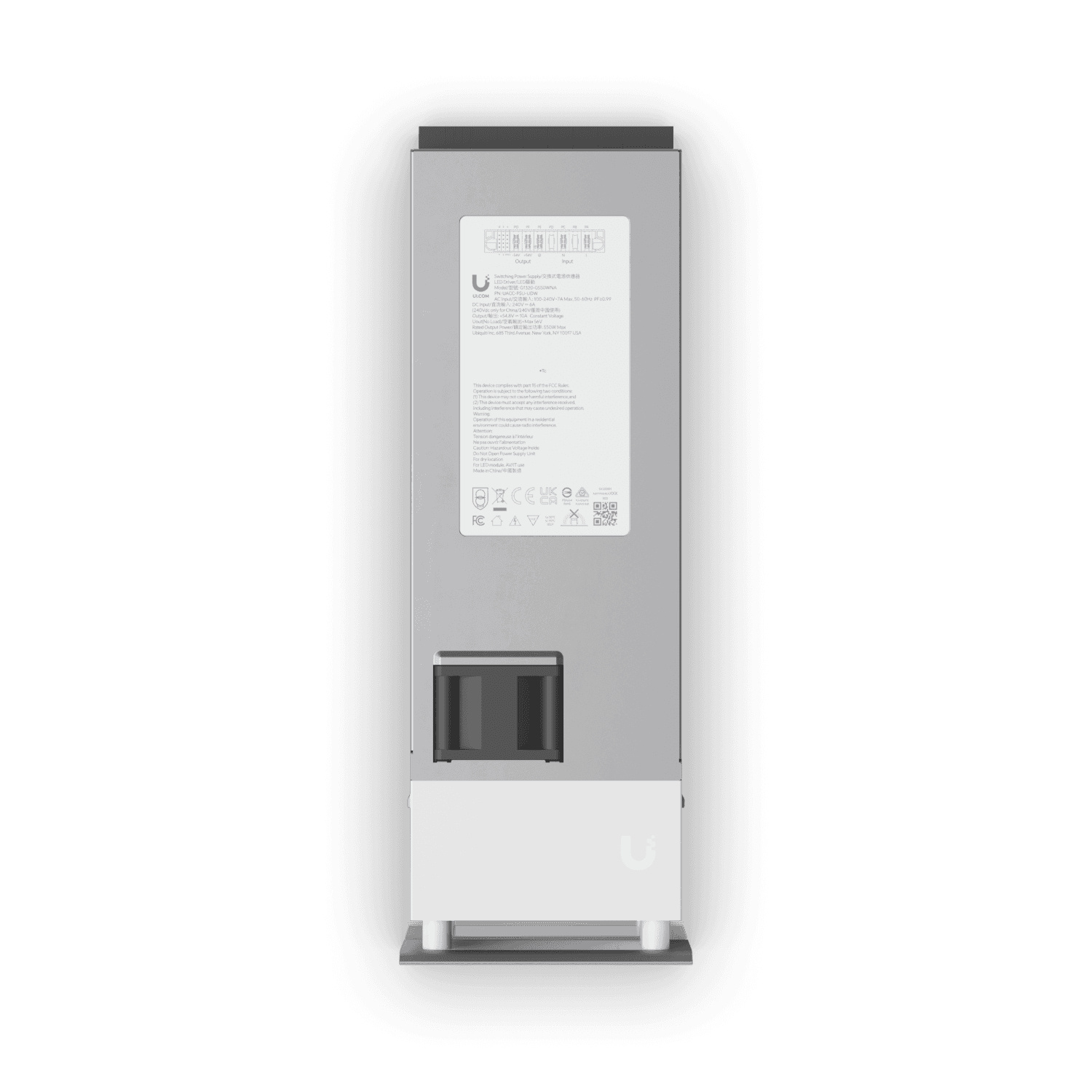 Ubiquiti UACC-PSU-UDW. Aansluiting type: JYP-M1207D-RT03R, Type product: Voedingsmodule, Materiaal behuizing: Aluminium, Polycarbonaat (PC), Staal. Ingangsspanning: 100 - 240 V, Frequentiebereik: 50 - 60 Hz, Spanning: 54.8 V. Certificering: CE, FCC, IC